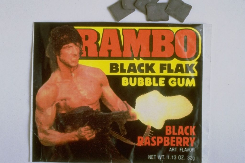 The black flak bubble gum merch for the film Rambo is not that great as a promotional tool so it’s quite shocking to have it manufactured.