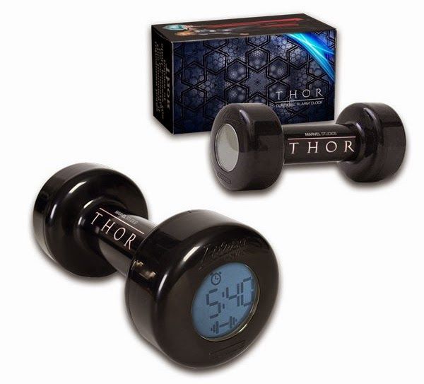 It is surprising to see that the alarm clock is in the form of a dumbbell though instead of Mjolnir or Stormbreaker.
