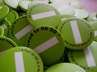 50th Birthday CD invitation and pins