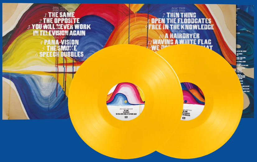 The first is the album on two 12” black vinyl records and the other is on yellow vinyl records. Both of which are available at the band’s official merch store.